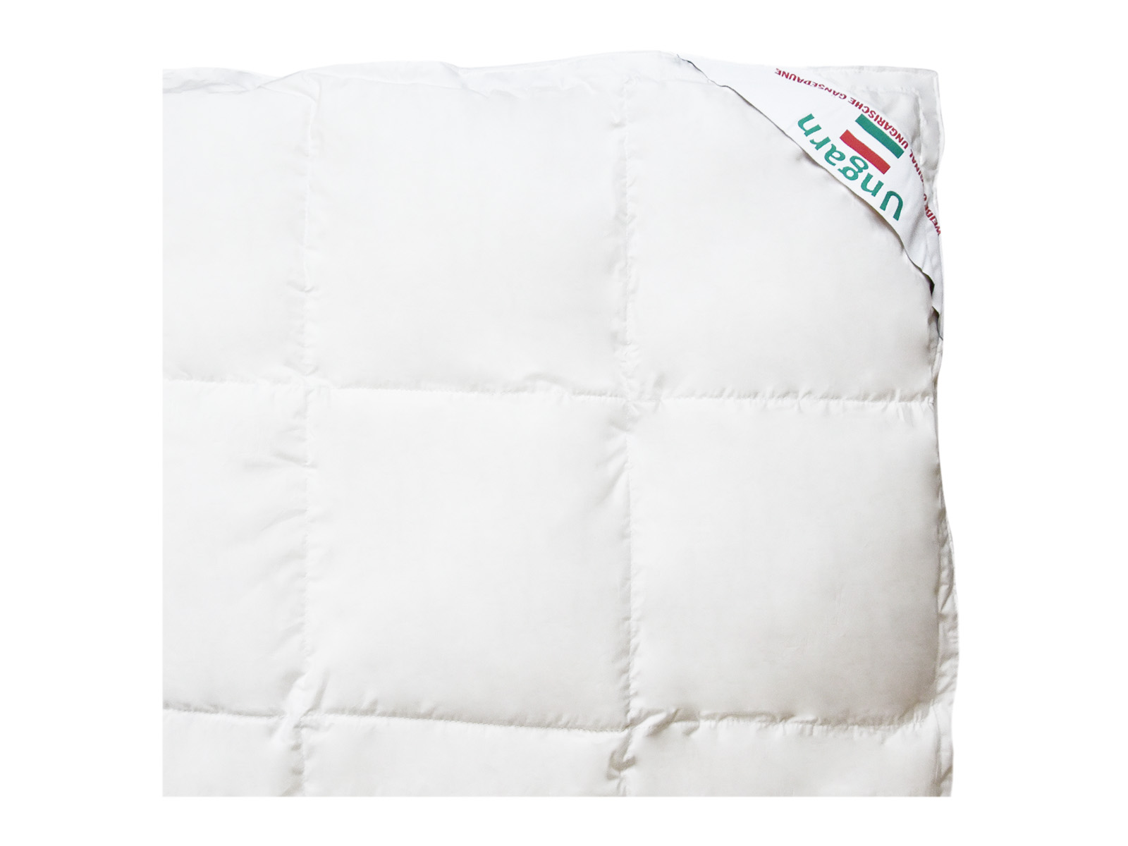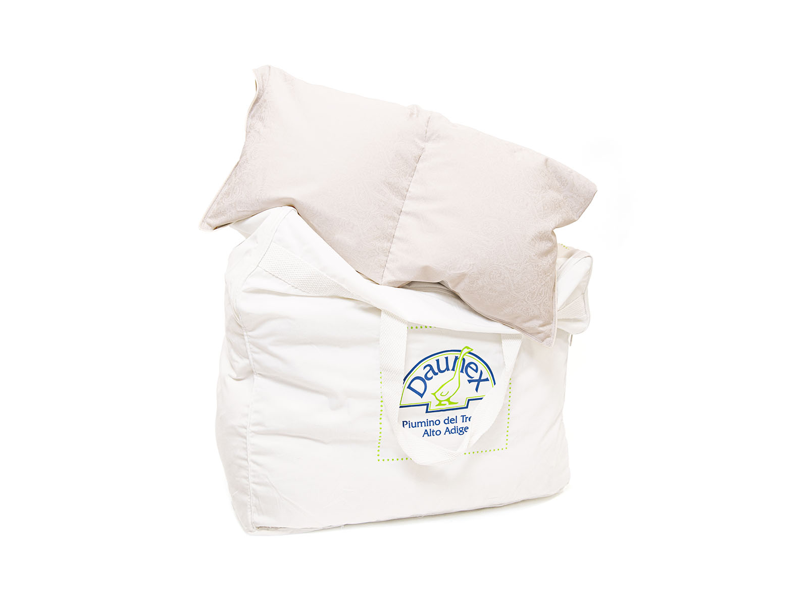 Il rivestimento in pregiato cotone satin jacquard, morbido e raffinato, conferisce eleganza al prodotto e una piacevole sensazione al tatto. La fettuccia perimetrale in satin completa il piumino con una finitura di alta qualità.