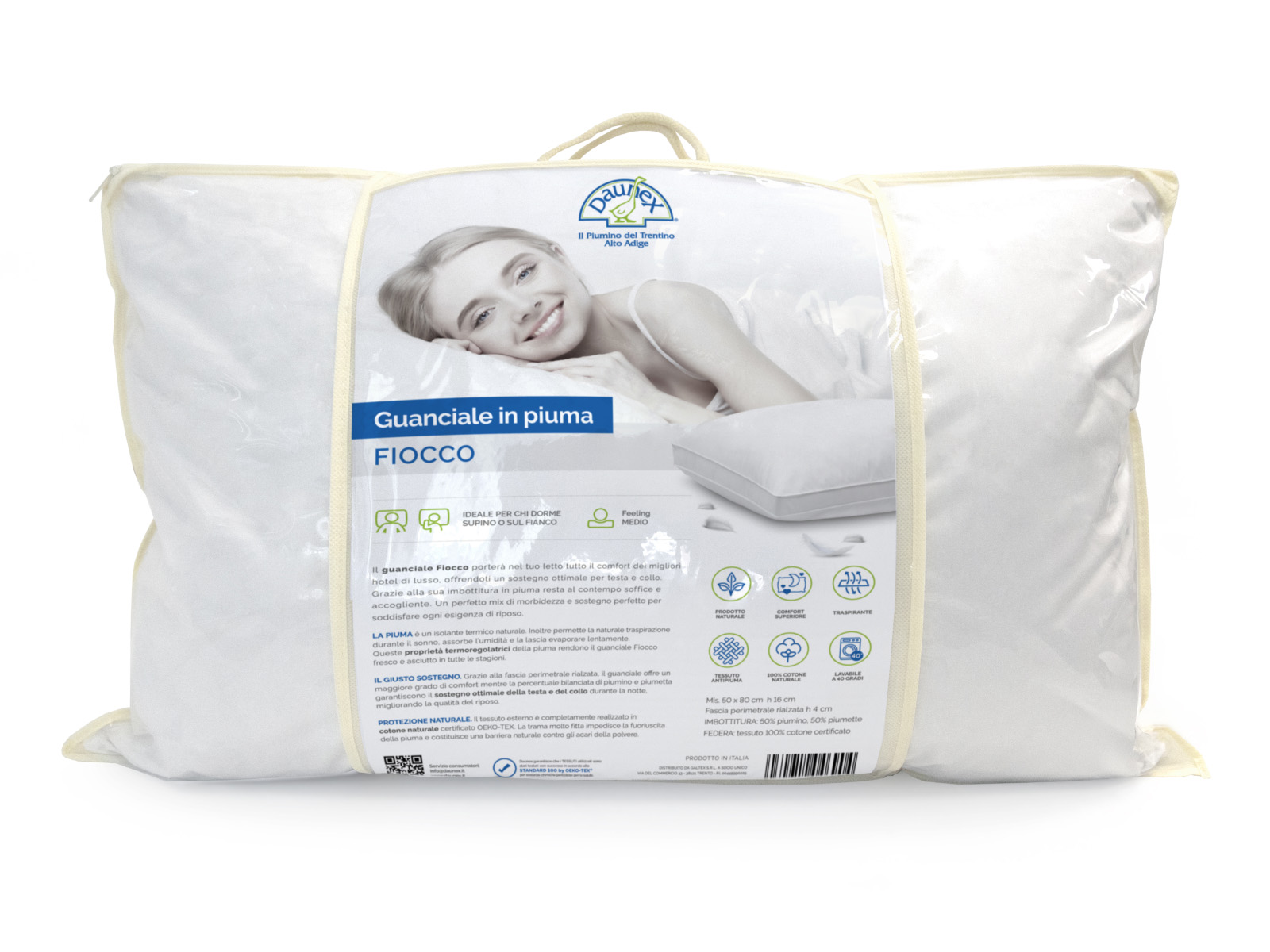 Formato da un’imbottitura esterna in 100% piumino e un nucleo interno costituito da 500 gr. lana e 100 gr. cirmolo.